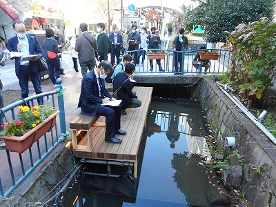 馬場川の一部にはテラスが設置され、プロジェクトによってどのように変わるのか体感できるようになっていました。