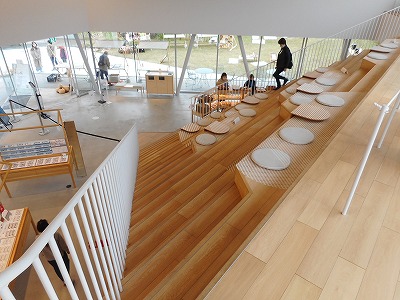 施設内には大階段や屋上テラスといった空間があり、敷地内では小規模なマルシェのようなものが開けるようになっていました。